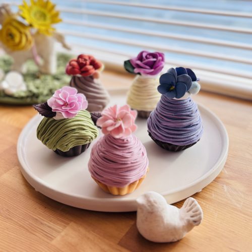 リアルなねんどのモンブラン。参加者サマ、家族がどんな反応するのか楽しみ~って言ってました。お皿に入れて、フォークを添えてテーブルに置いておくそうです。かる~いドッキリですね。とっても楽しんでいただけたようでワタシも嬉しいです。ありがとうございます。